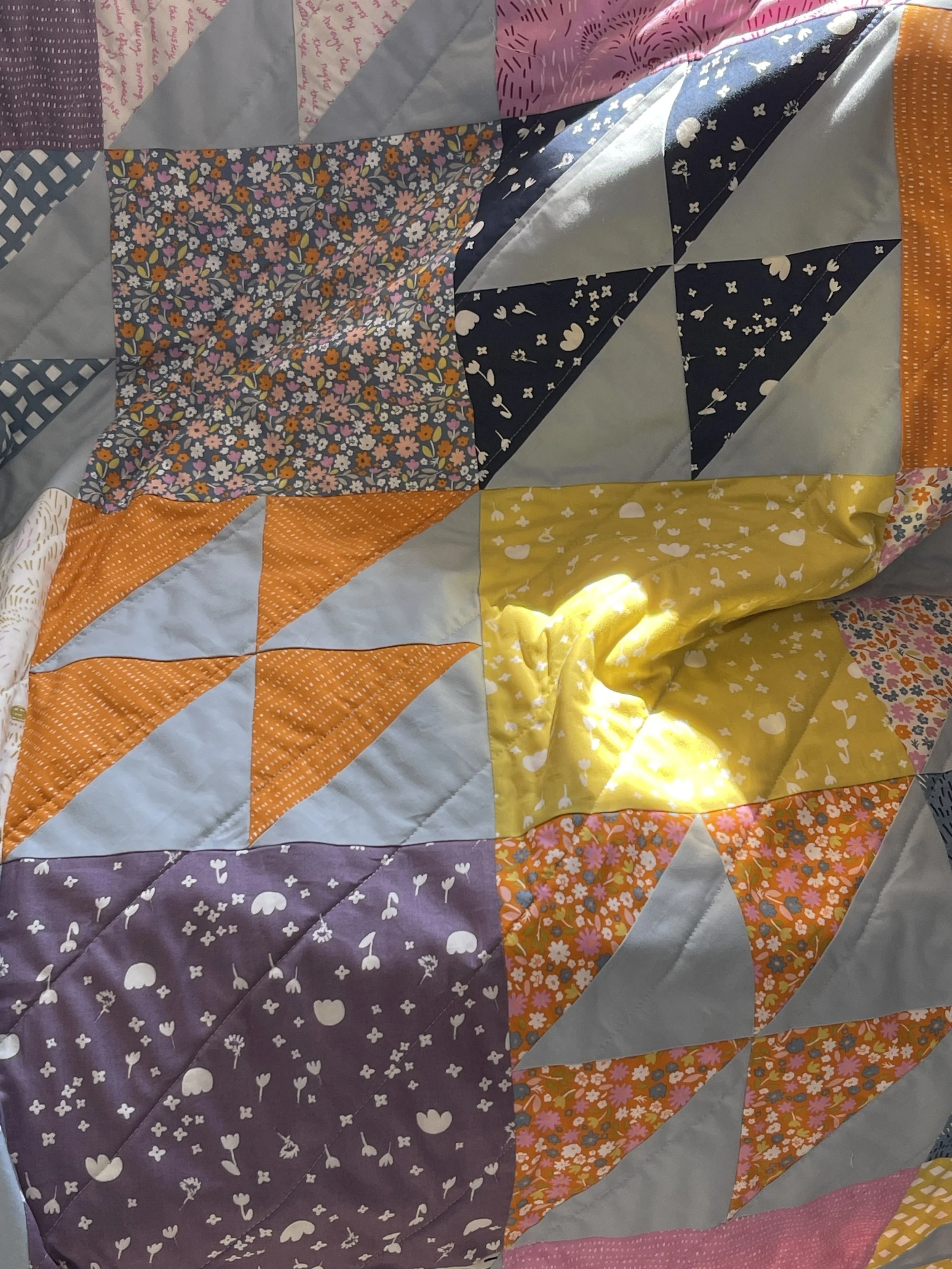 Quilting: Free motion quilted in diagonal lines to enhance pattern