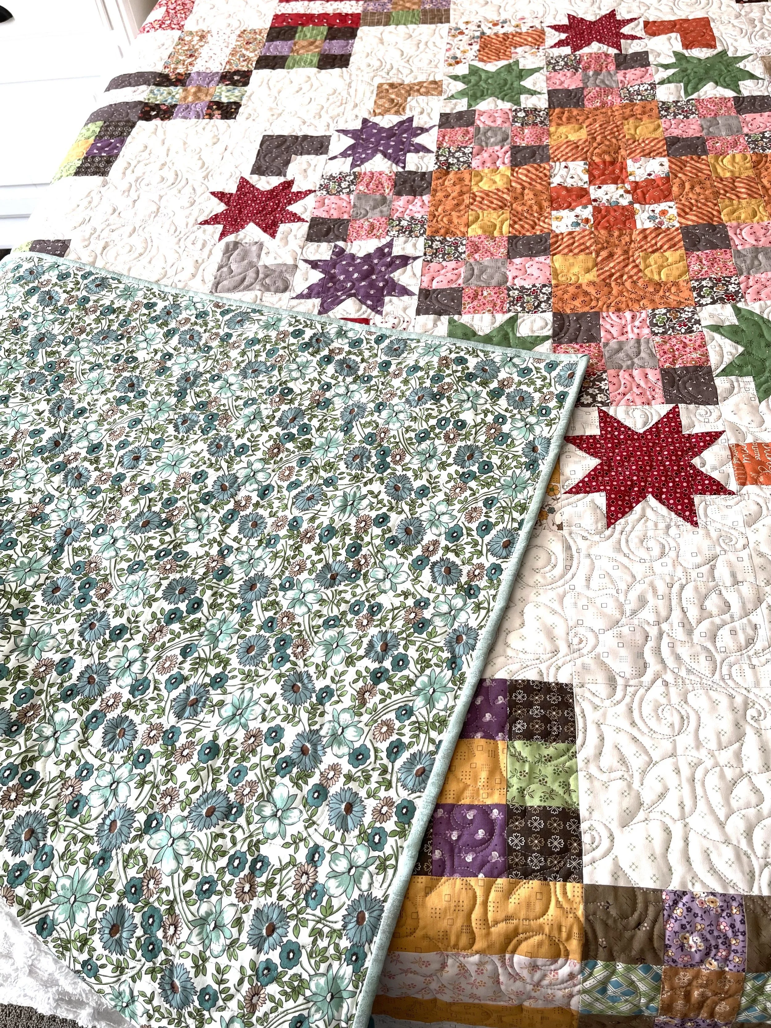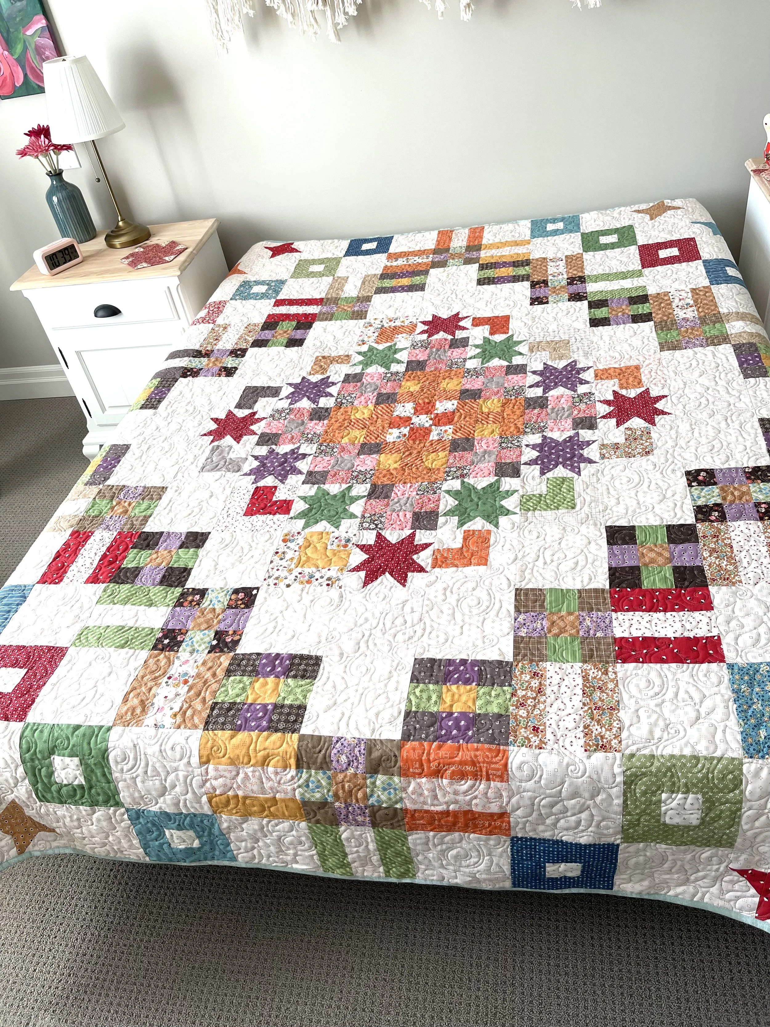 Autumn is a queen quilt named for the fabric collection I used. Warm and muted yet still colourful and joyful.
